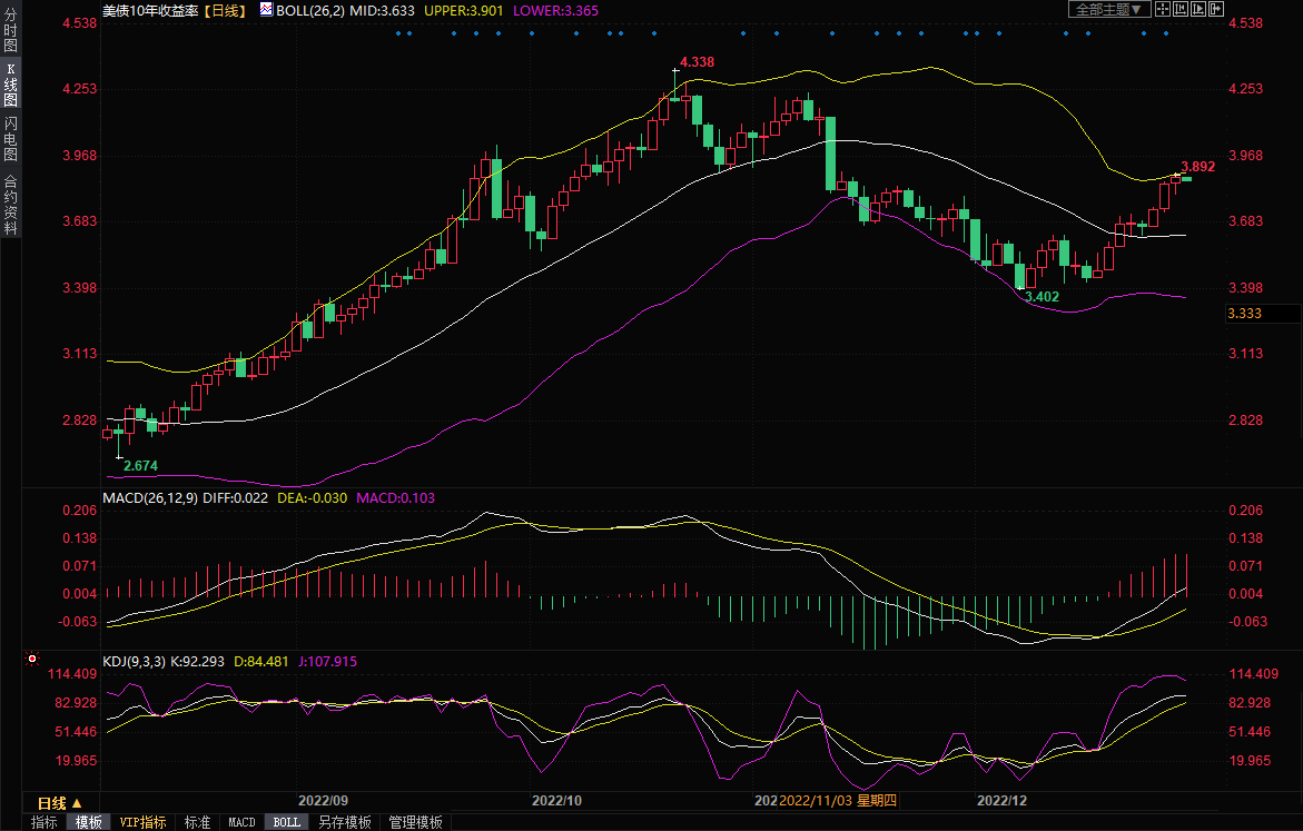 由于对美联储将发出结束加息周期信号的希望增强,10年期美债收益率在12月7日触及近三个月低位,此后已稳步攀升。上周创下八个半月以来最大周线涨幅,此前美联储、英国央行和欧洲央行均宣布政策决定。