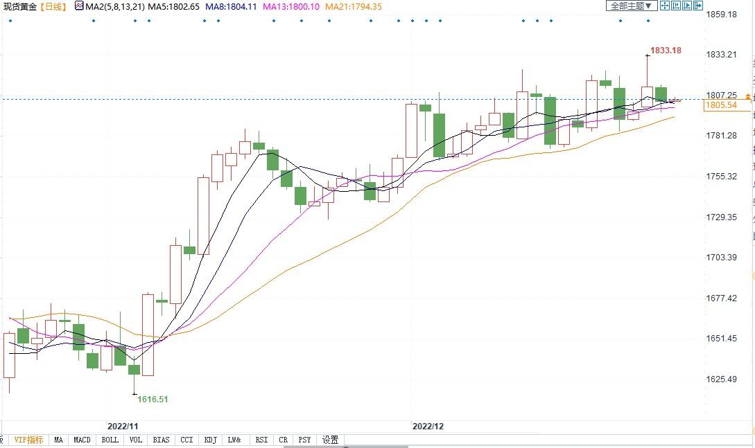 北京时间12月29日8:21,现货黄金报1805.15美元/盎司