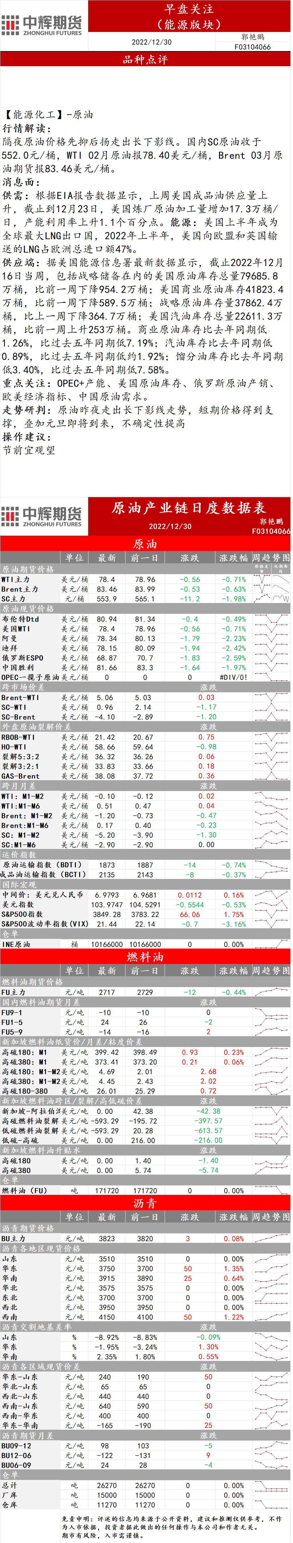 标题:中辉期货能源早盘关注:不确定性提高,节前宜观望