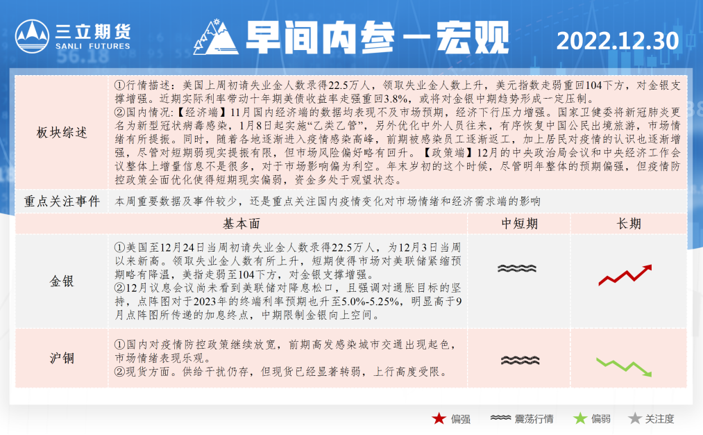 汇通财经APP讯——三立期货早间内参显示,金银中短期偏震荡,长线偏多;沪铜中短线偏向震荡,长线偏空。三立期货期货公司授权文本由“专注期货开户交易及专业行情分析资讯网站”【一期货 www.1qh.cn】转发。