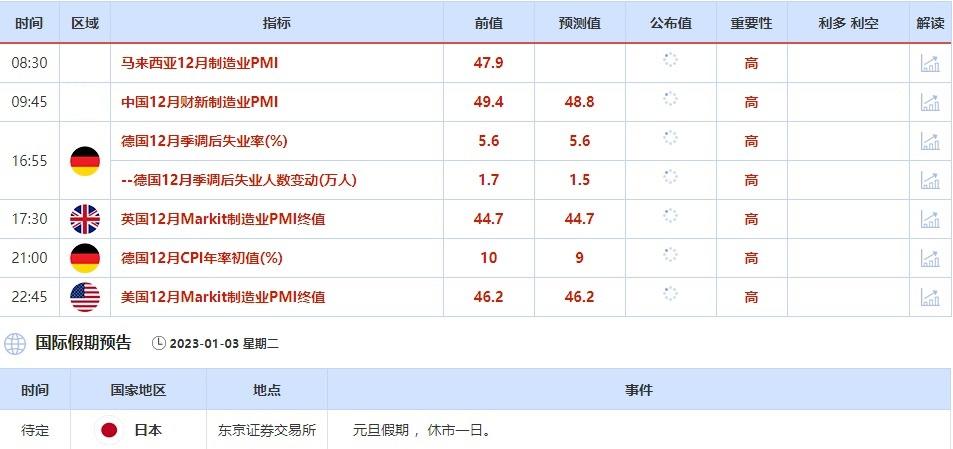 ①1月2日(周一)关键字:欧元区12月Markit制造业PMI终值,元旦休市公告