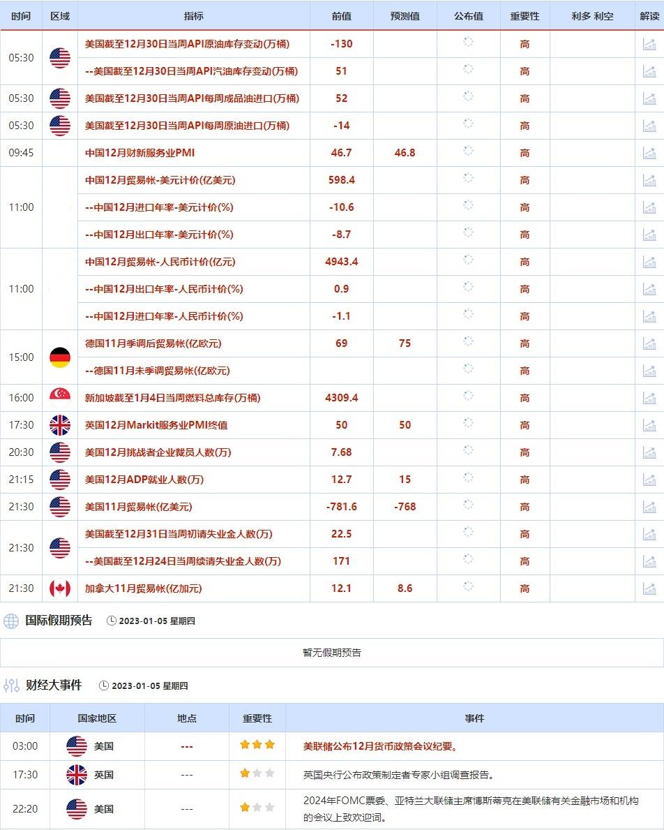 1月5日,美国将公布12月货币政策会议纪要,投资者可以从中了解美联储官员的想法,以及未来货币政策的相关线索。