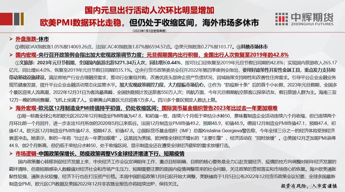 汇通财经APP讯——1月3日,中辉期货发布宏观早报,称海外欧美通胀黏性较强,通胀去化较慢,经济下行也正在打压资产价格,本周关注美联储12月会议纪要,全球多国最新制造业PMI,欧元区CPI数据和美国12月非农。