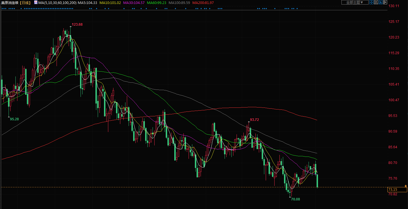 商品收盘情况:布伦特原油期货结算价报每桶77.84美元,急跌5.2%。美国原油期货收报每桶72.84美元,重挫5.3%。美国期金上涨了0.7%至1858.40美元。