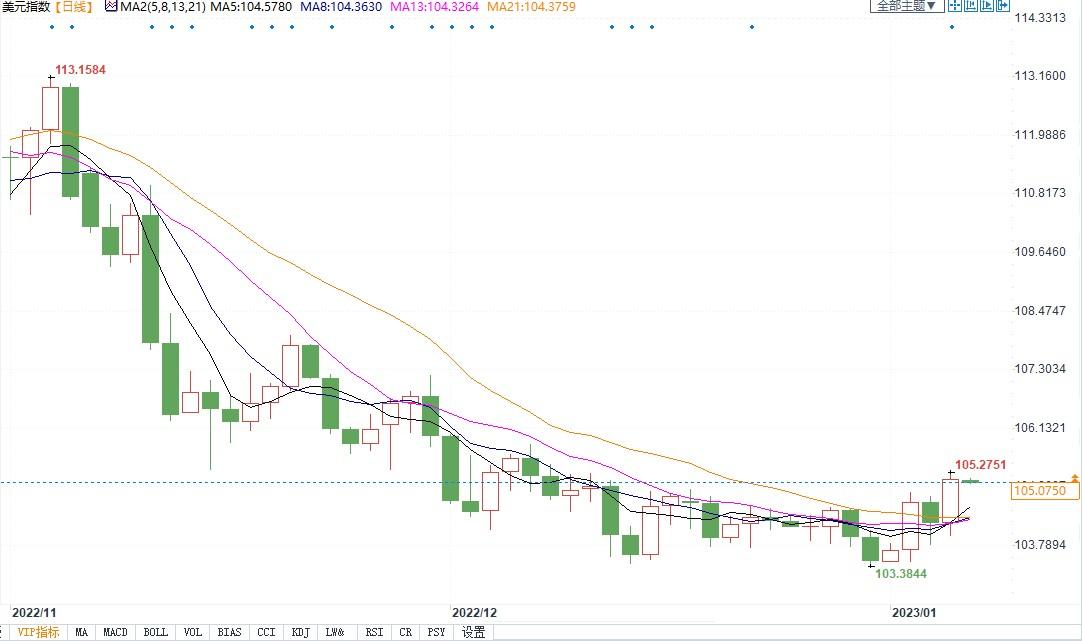 美元指数报105.09