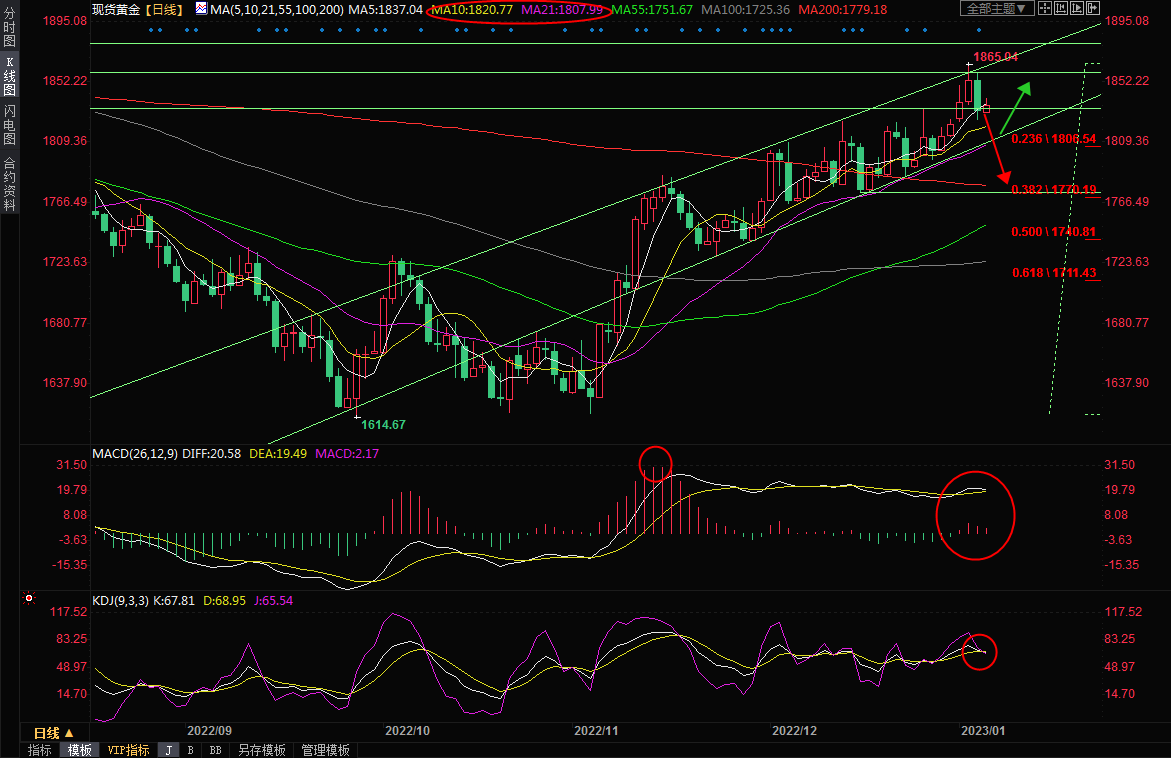 不过,在下破21日均线附近强支撑前,后市多头仍有一定的机会,但需要顶破周四高点1858.93附近阻力,才能扭转短线看空信号。