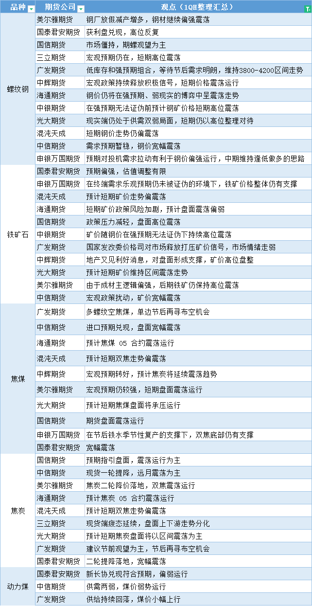 标题:期货公司观点汇总一张图:1月11日黑色系(螺纹钢、焦煤、焦炭、铁矿石、动力煤等)