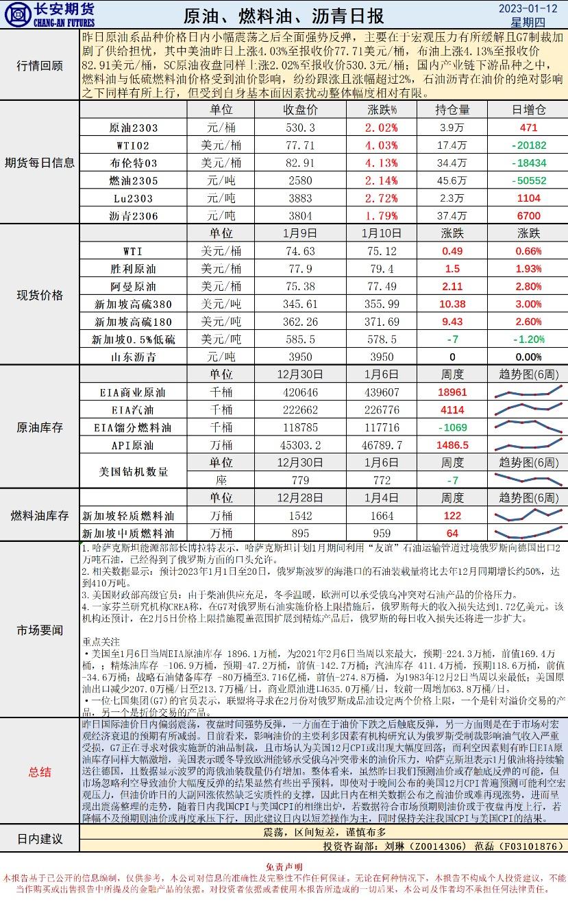 汇通财经APP讯——1月12日,长安期货发布原油早评,认为原油将震荡,建议区间短差,谨慎布多。 长安期货公司授权文本由“专注期货开户交易及专业行情分析资讯网站”:【一期货 www.1qh.cn】转发