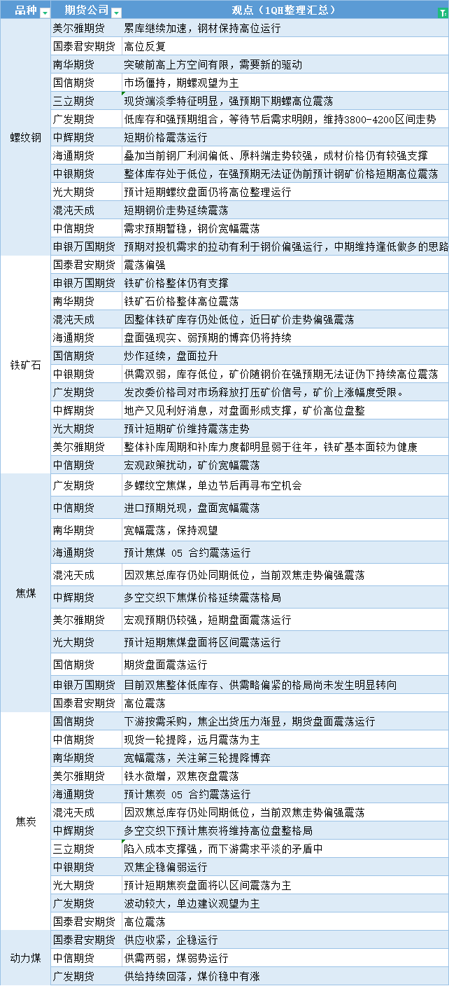 标题:期货公司观点汇总一张图:1月13日黑色系(螺纹钢、焦煤、焦炭、铁矿石、动力煤等)