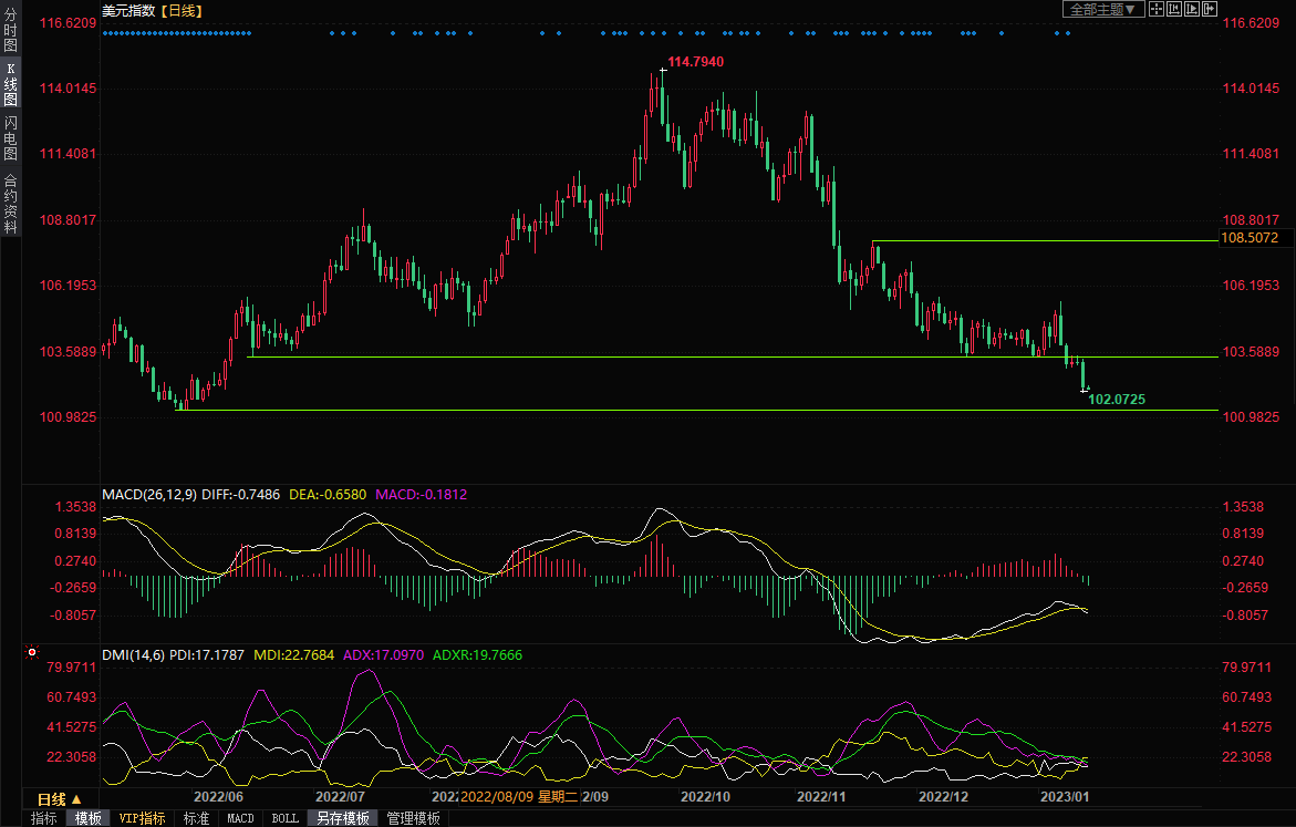 汇通财经APP讯——周五(1月13日)亚市早盘,美元指数在近七个月低位附近徘徊,目前交投于102.18附近。因数据显示美国通胀正在放缓,促使人们押注美联储未来加息将不那么激进,美元指数周四大跌近1%,创近七个月新低至102.07,欧元兑美元则升至近九个月高位。