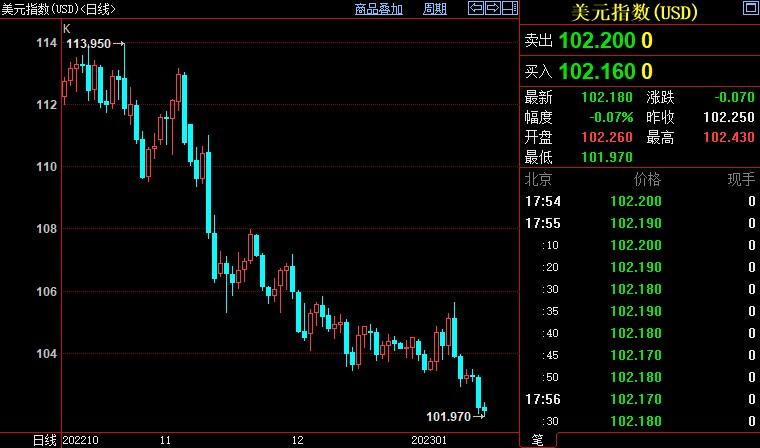 汇通财经APP讯——本周最重要的事件莫过于美国公布12月通胀报告,尽管美国整体消费者物价指数(CPI)较去年同期涨幅仍为美联储目标水准2%的三倍有余,但环比出现2020年5月以来的首次下滑,通胀降温迹象进一步强化美联储将退出激进加息路线的预期,从而令美元大大受挫,美元指数下跌逾1.7%,一度创去年6月上旬以来的最低水平101.974。