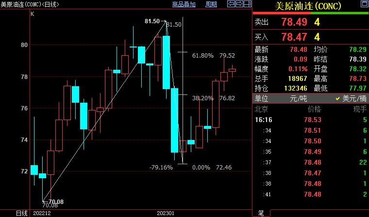 北京时间16:17,NYMEX原油期货上涨0.13%至78.49美元/桶;ICE布伦特原油期货上浮0.04%至84.06美元/桶。