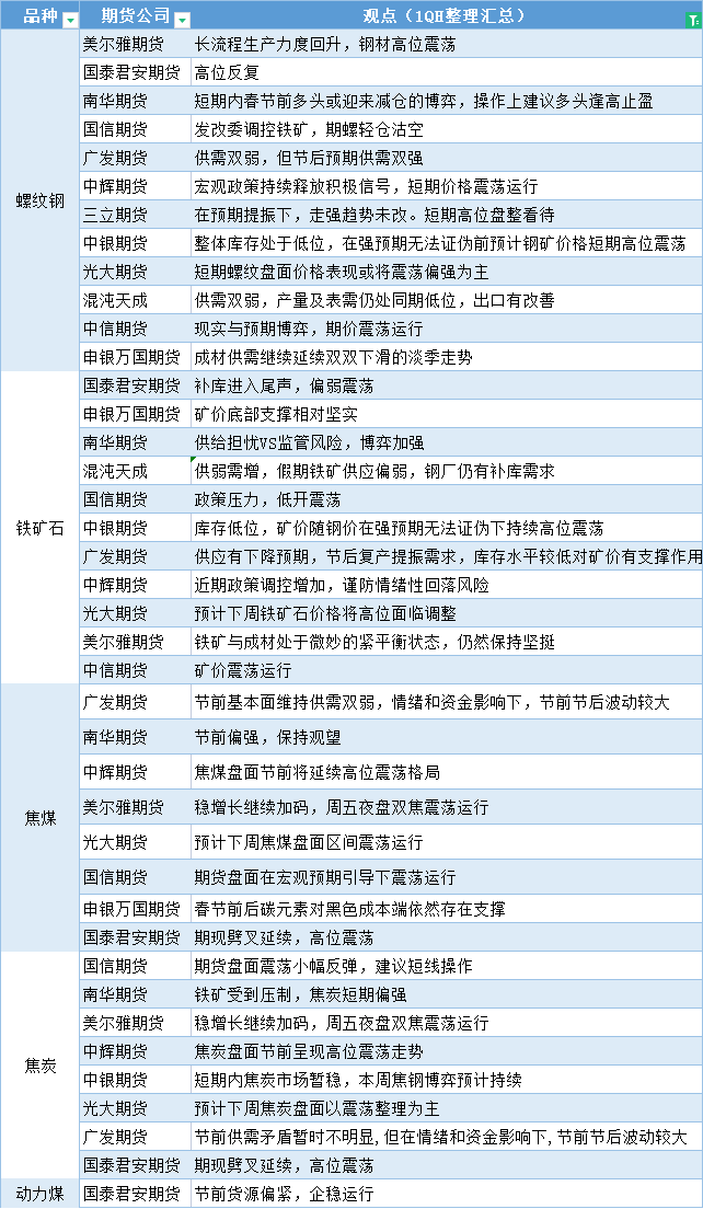 标题:期货公司观点汇总一张图:1月16日黑色系(螺纹钢、焦煤、焦炭、铁矿石、动力煤等)