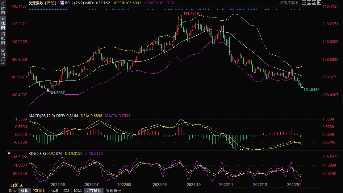 【美元指数跌创逾七个月新低】因美国通胀降温,巩固了美联储将放缓加息步伐的预期。