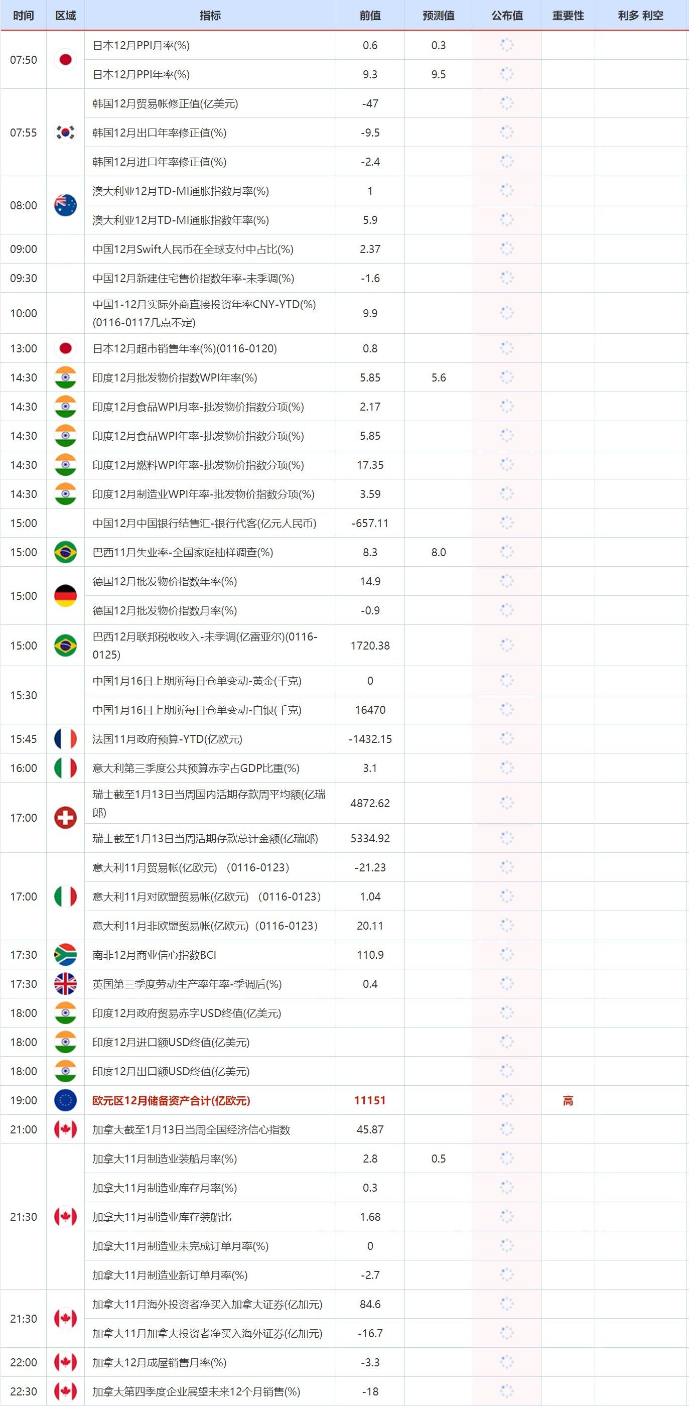 后续及时更新的财历数据请关注:【汇通网1月16日财经日历】