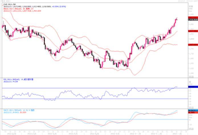 周一美国市场恰逢马丁路德金纪念日休市,数据和消息相对较少,在金价短线大幅上涨后,一些短线多头趁机获利了结,黄金出现调整性回落。但金价继续受到美联储加息步伐放缓预期支撑。美联储去年在连续四次加息75个基点后于12月放缓加息步伐至50个基点。大多数交易员预计,美联储将在今年首次政策会议上进一步放慢加息步伐至25个基点。投资者还将关注周三(1月18日)公布的美国零售销售数据。有机构分析认为,美国零售支出步伐不可持续,因为消费者保持着大流行时期的购物习惯。随着美联储货币紧缩的影响将在2023年充分体现,最糟糕的情况还在后头。美国家庭的消费似乎远远超出了他们的收入,未来几个月支出将大幅放缓。随着通货膨胀率开始好转,而且速度快于美联储的预期,分析界认为美联储将很快改变其措辞。在美国经济的通胀压力正在逐步得到控制情形下,基金经理积极增加了他们的黄金多头敞口,理由是美联储最终加息终点可能没有预测得那么高,这让投资者相信黄金有上涨空间。