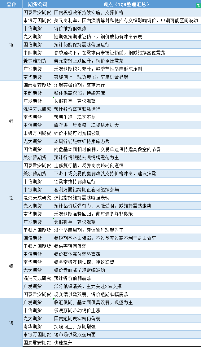 标题:期货公司观点汇总一张图:1月17日有色系(铜、锌、铝、镍、锡等)