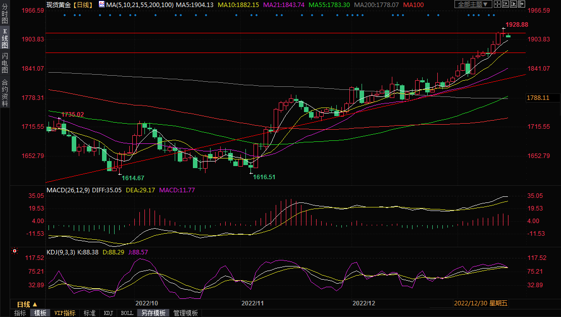 汇通财经APP讯——周二(1月17日)亚洲时段,现货黄金震荡微跌,目前交投于1910美元/盎司附近。因为上周美国CPI数据显示美国通胀增速放缓后,美元指数持续走弱,周一一度创七个半月新低至106.77附近,金价则一度涨至1928.88附近,为4月25日以来新高,但随后美元展开反弹,金价则回吐涨幅。。