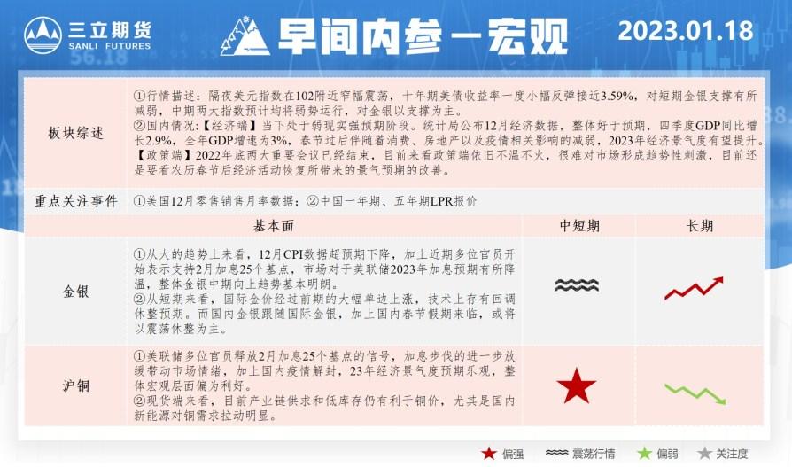 汇通财经APP讯——三立期货早间内参显示,金银中短期偏向震荡,长线偏多;沪铜中短线偏向多头,长线偏空。三立期货期货公司授权文本由“专注期货开户交易及专业行情分析资讯网站”【一期货 www.1qh.cn】转发。