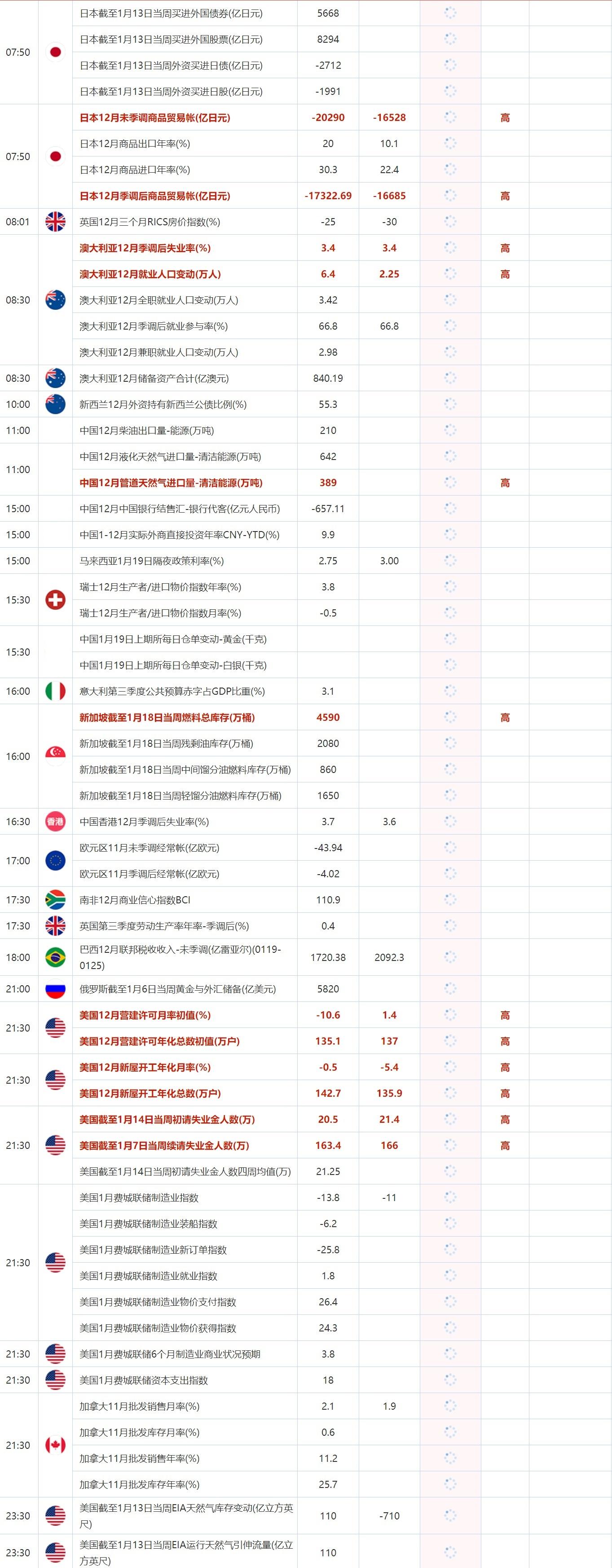 后续及时更新的财历数据请关注:【汇通网1月19日财经日历】