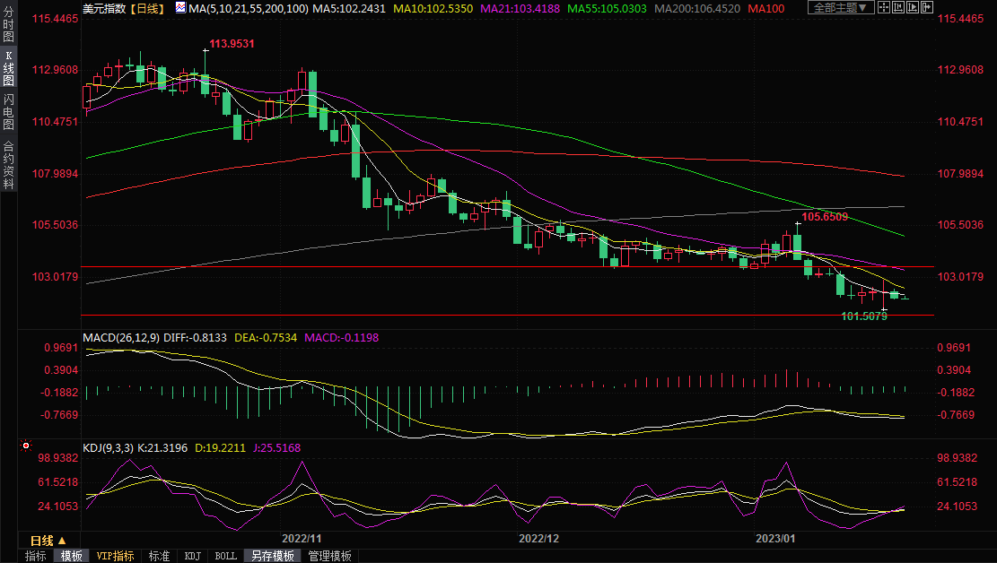 美元指数窄幅震荡,目前交投于102.10附近;周四美元在震荡交易中下滑,因为一系列数据持续显示,在美联储多次大幅加息后,美国经济正在放缓,市场预计今年将暂停紧缩政策。