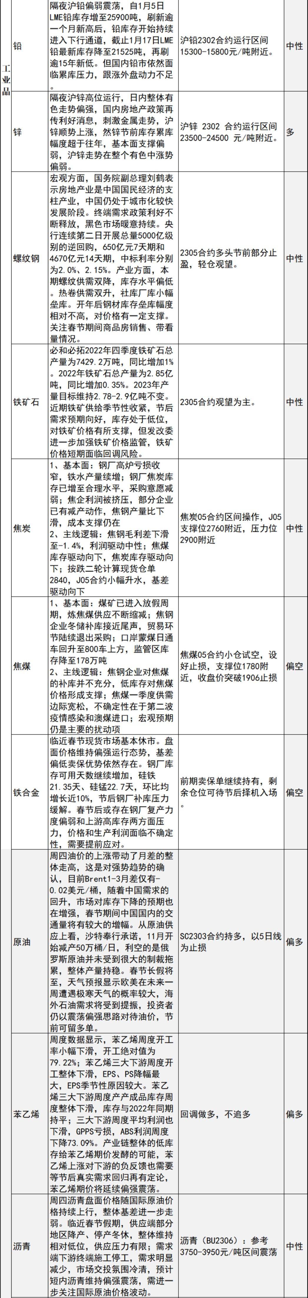 螺纹钢:本期螺纹供需双降,库存水平偏低。热卷供需双升,社库厂库小幅垒库。开年后钢材库存垒库幅度相对不高,对价格有一定支撑。关注春节期间商品房销售、带看量情况。