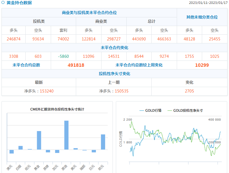 贵金属方面,截至1月17日当周,投机者所持COMEX黄金净多头头寸增加10783手合约,至93357手合约,创最近约九个月新高。所持COMEX白银净多头头寸增至28042手合约,所持COMEX铜净多头头寸增至35248手合约创最近逾九个月新高。所持NYMEX铂金净多头头寸降至16897手合约创最近10周新低,所持NYMEX钯金净空头头寸增至1959手合约创最近约六个月新高。