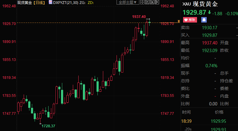 汇通财经APP讯——现货黄金本周升创4月22日以来新高至1937.40美元/盎司,料连续第五周收高,因数据显示美国通胀进一步放缓。但美联储多位决策者仍呼吁将利率升至5%以上,这削弱了对美联储即将结束本轮政策紧缩周期的预期,美指收复周内多数跌势也限制了金价升幅。