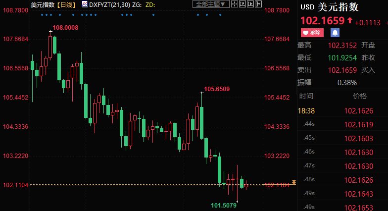 截至发稿,现货黄金本周累计上涨0.52%至1929.92美元/盎司;美元指数本周下跌0.02%至102.163,盘中一度跌创6月3日以来新低至101.508。