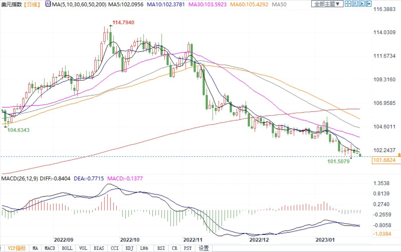 北京时间1月23日11:04,美元指数报101.68