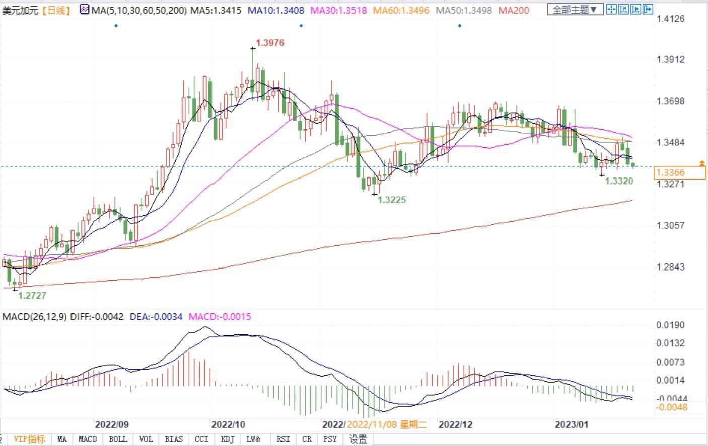 北京时间1月23日10:03,美元兑加元报1.3368/70