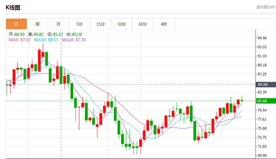 商品收盘情况:布伦特原油期货收高0.56美元,报每桶88.19美元,盘中高见每桶89.09美元,是12月1日以来的最高位。美国原油期货收盘微跌0.02美元,报每桶81.62美元,脱离了盘中触及的12月5日以来最高每桶82.64美元。美国期金收于1928.6美元,变化不大。
