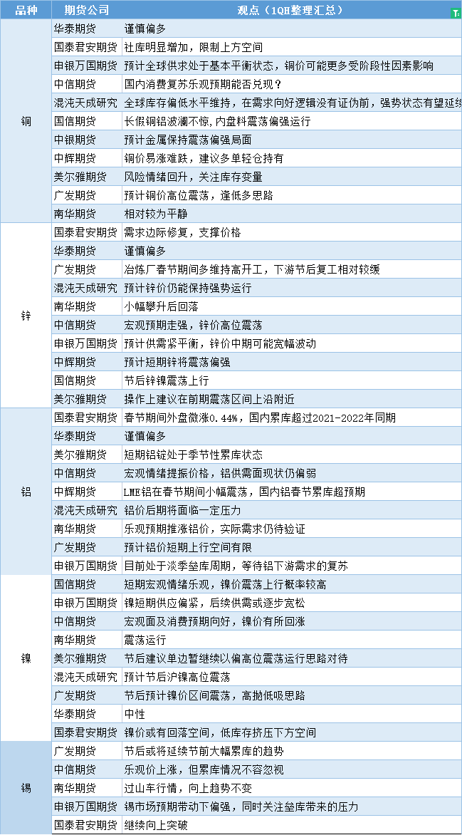 标题:期货公司观点汇总一张图:1月30日有色系(铜、锌、铝、镍、锡等)