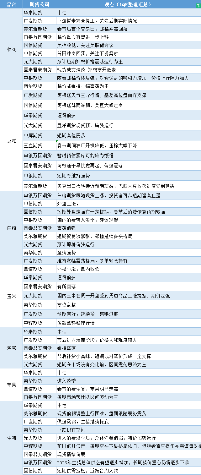 标题:期货公司观点汇总一张图:1月31日农产品(棉花、豆粕、白糖、玉米、鸡蛋、生猪等)