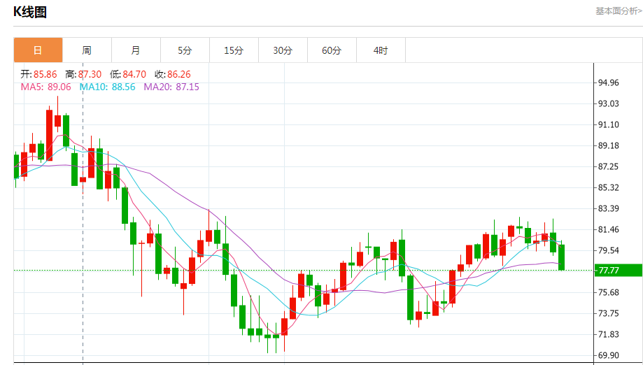 商品收盘情况:将于3月交割的布伦特原油期货下跌2.03%,报每桶84.90美元。美国原油期货下跌2.23%,报每桶77.90美元;美国期金结算价下跌0.3%,至1922.9美元。