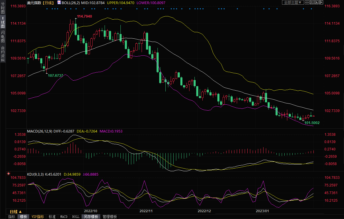 美元指数周二冲高回落,早些时候一度创近两周新高至102.61,但数据显示美国第四季劳动力成本增幅低于预期,市场预计美联储周三将宣布仅加息25个基点,
