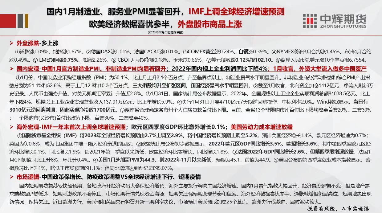 汇通财经APP讯——2月1日,中辉期货发布宏观早报,称市场预计美联储或加息25个基点,欧洲央行或激进,届时波动较大。中辉期货公司授权文本由“专注期货开户交易及专业行情分析资讯网站”:【一期货 www.1qh.cn】转发