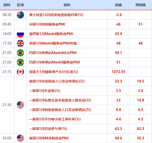 本周美国经济数据方面的重头戏将是周五公布的1月非农报告,预计该报告将显示雇主在该月增加了18.5万个工作岗位。