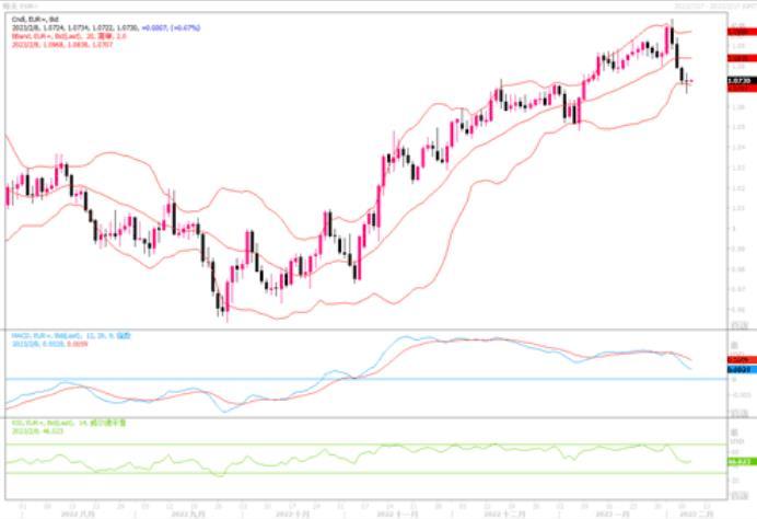 美元周二(2月7日)从一个月高位回落,因为周二美联储主席鲍威尔重申了上周关于通胀已经开始放缓的声明,称他预计今年通胀将大幅下降。尽管上周五的美国非农就业报告大放异彩,鲍威尔并没有恢复鹰派立场,这使投资者相信,美联储不可能较市场已经消化的进一步收紧政策。欧元兑美元变化不大,在鲍威尔讲话后从稍早曾触及1.0670美元的五周最低拉升回1.07楼上。当前对于欧元存在的有利因素是:欧央行或在试图纠正市场对2月利率决议和声明鸽派解读、自身贸易条件在改善、中国经济增长的提振、与美联储政策息差的收窄。不利因素则有俄乌冲突局势的升级。日线图上上周二收市出现十字星,且整体走势仍保持在上升通道中,因此欧元未出现严重衰退迹象。4小时图上,MACD绿色动能柱有所收敛,RSI自超卖区域勾头,若能坚守1.0660-1.07区域,则欧元或存在反弹走高机会。短线还需防范来自美国经济数据所带来的一些冲击。