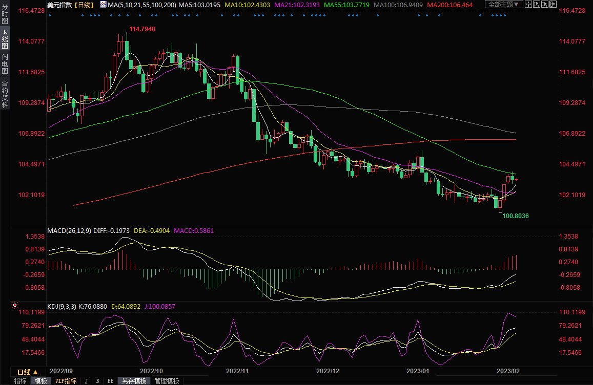 美元指数从一个月高位回落,因为尽管上周五的美国非农就业报告大放异彩,但美联储主席鲍威尔并没有恢复鹰派立场,鲍威尔重申了上周关于通胀已经开始放缓的声明,他预计今年通胀将大幅下降。这使投资者相信,美联储不可能较市场已经消化的进一步收紧政策。