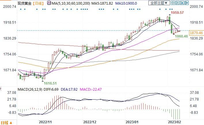 北京时间2月9日10:55,现货黄金报1879.21美元/盎司