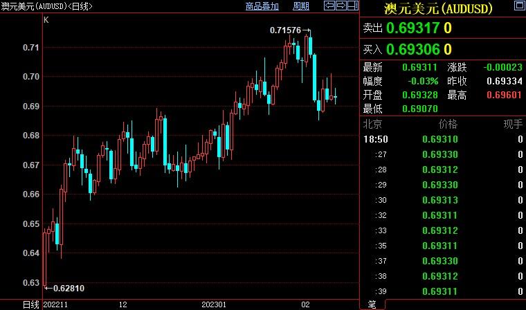 澳元低位反弹企稳,获央行双重鹰派立场加持。澳洲联储先是周二(2月7日)升息25个基点并暗示进一步收紧政策,又在周五(2月10日)的季度政策声明中上调通胀和经济预估,再度表明未来会有更多升息。