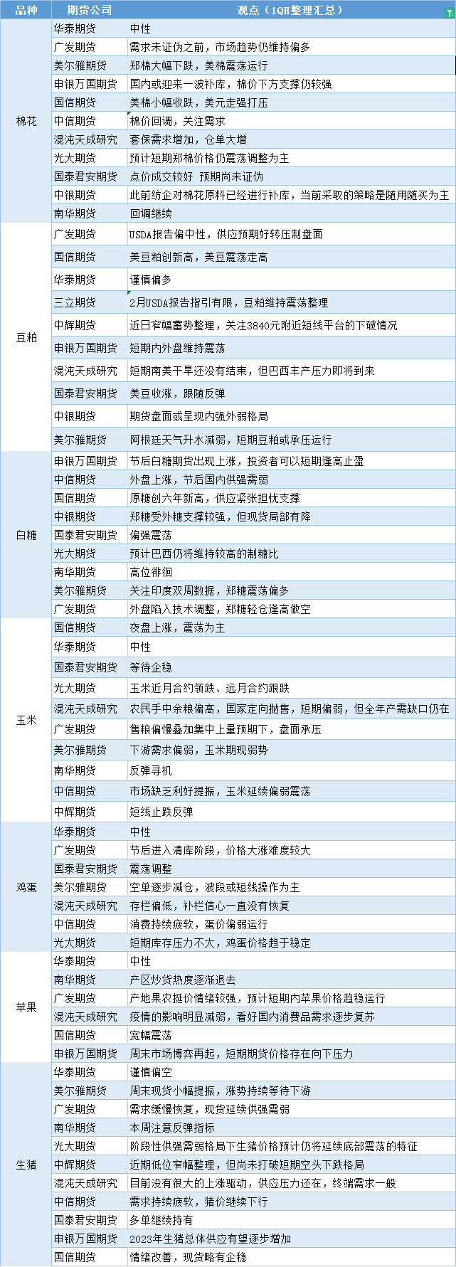 标题:期货公司观点汇总一张图:2月13日农产品(棉花、豆粕、白糖、玉米、鸡蛋、生猪等)