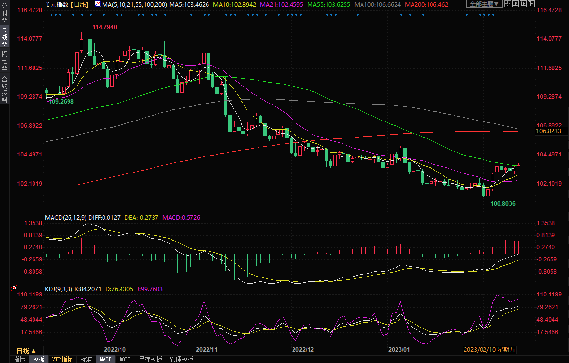 美元指数延续上周五涨势,目前初步顶破了55日均线103.62关键位置,目前交投于103.72附近,此前一度创四个交易日新高至103.82,布林线上轨阻力在104.00关口附近,需要予以关注。投资者愈发担心本周公布的美国通胀数据可能高于市场预期。