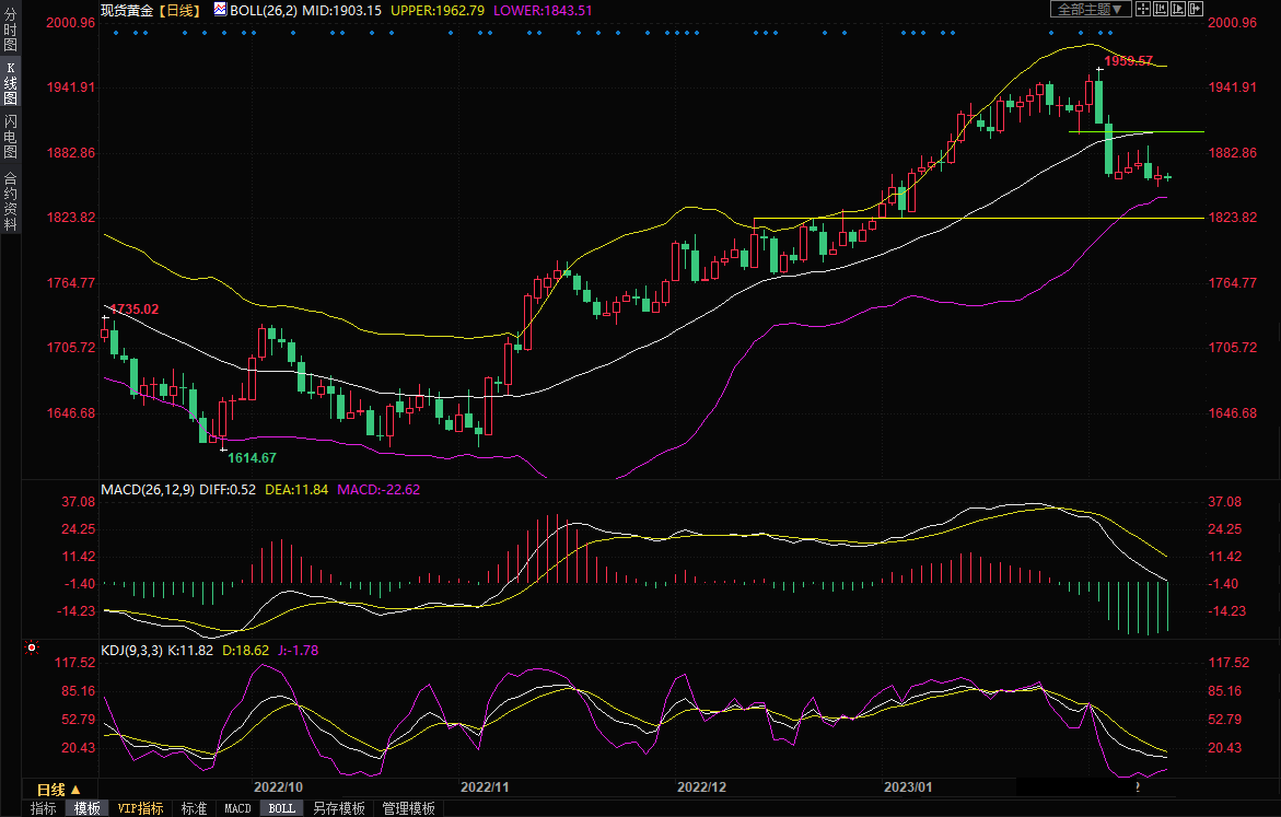 整体来看,虽然对美联储进入加息周期尾期的预期和地缘局势担忧,仍吸引逢低买盘支撑金价,但对美国通胀增速可能再度回升的担忧和对美国经济数据的乐观预期,偏向支撑美元和美债收益率,短线金价面临一定的下行风险,建议关注布林线下轨1843附近支撑和1月5日低点1825附近支撑,后者接近1615-1960涨势的38.2%回撤位。上方则留意10日均线1885.83附近阻力,如果金价回升至该位置上方,则削弱短线看空信号。北京时间10:14,