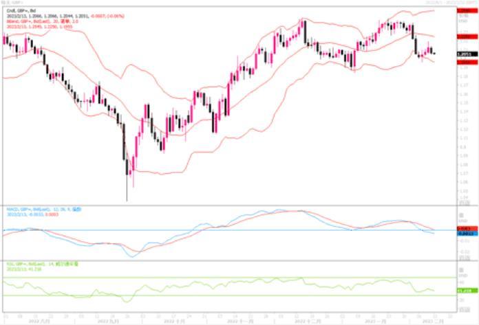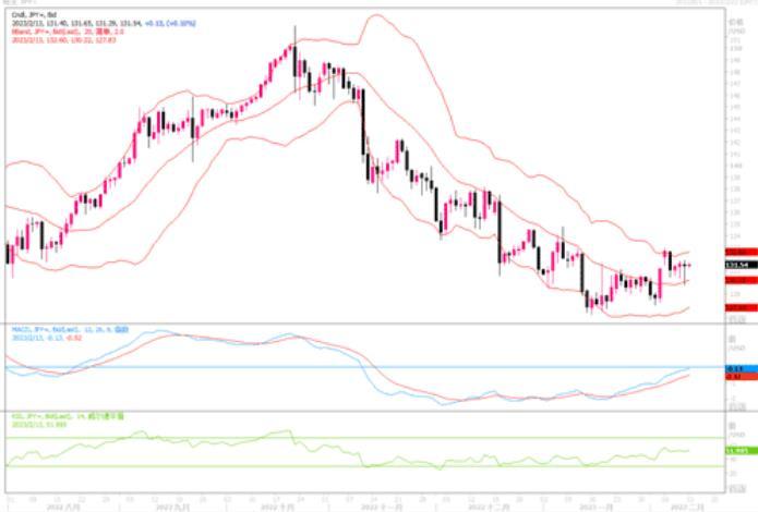 周五(2月10日)美元兑日元起伏较大,稍早一度触及129.80的一周最低,盘尾则出现拉升,报收于131.43。此前日经新闻报导称,日本政府可能会提名日本央行政策委员会前成员植田和男为央行下任总裁,推动日元急升,市场预期超宽松货币政策可能提前结束。但在日本电视网直播的采访中,植田和男表示央行目前的宽松货币政策是合适的,应该继续下去,这导致日元回吐了稍早的部分涨幅。当前的美元兑日元走势,很大程度上在受日本央行总裁人选出炉的影响。因为继任者在货币政策上的倾向会给到美元兑日元该货币对直接的影响。此外,本周来自美国的1月份CPI数据也将会对该货币对施加影响力。目前日线图上,美元兑日元继续处于各短期均线上方,且运行于布林带通道上方,显见美元兑日元的反弹势能有所增强。若本周美国通胀数据强,料美元兑日元将加强反弹测试上方强阻力水平135.00。而下方目前127.20-128.00水平区域构成了较强的支撑区域。