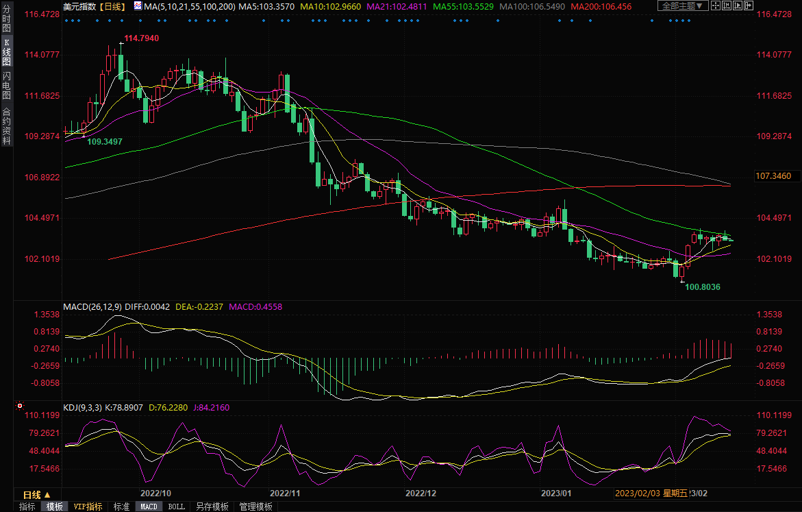美元指数冲高回落,早些时候因为市场预期美国1月份通胀增速回升,美元一度逼近逾一个月高位,最高触及103.84,但随后这种预期有所降温,