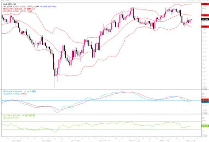 周一(2月13日)英镑兑美元上涨0.6%,至1.2134美元。本周经济数据密集,投资者将关注英国和美国的通胀数据,对进一步加息的步伐作出押注。市场预计英国1月通胀率可能从12月的10.5%进一步放缓至10.2%,之前在10月似乎达到了11.1%的峰值。该数据将于周三公布。外界认为,这会增强了英国央行放慢加息步伐的理由。此前,英国央行在2月早些时候放弃了“采取有力行动”遏制通胀的说法,市场将其视为英国央行可能即将结束加息周期的信号。但也有另一种声音认为英国央行停下加息步伐是毫无根据的。因为包括曼恩和哈斯克尔在内的英国央行利率制定者在会议后表示赞成进一步加息。因此,本周英美国家的通胀数据都将会引起外汇市场较大的波动。日图1.2200下方遇阻回落,但进一步扩大跌幅需要跌破MA100。4小时图反复测试1.2030水平受到支撑转而反弹回升,短线恐怕还要在近期低位区域(1.20-1.2160)挣扎徘徊。