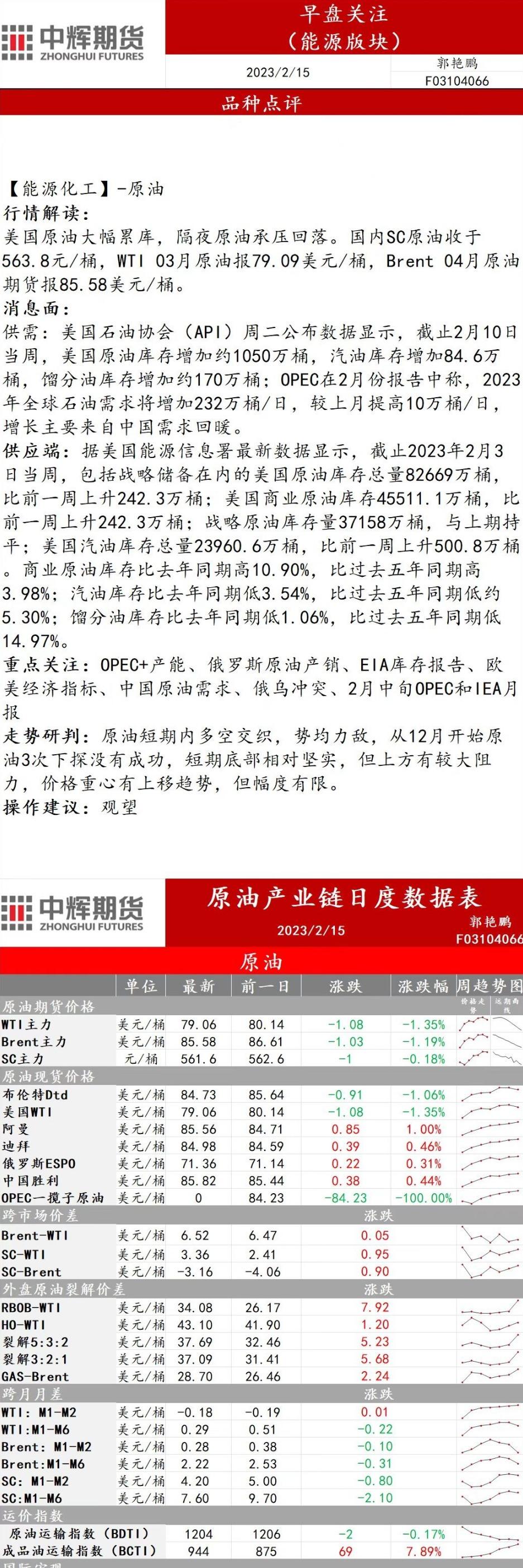汇通财经APP讯——2月15日,中辉期货发布能源早盘关注,称价格重心有上移趋势,但幅度有限。中辉期货公司授权文本由“专注期货开户交易及专业行情分析资讯网站”:【一期货 www.1qh.cn】转发