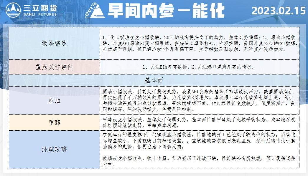 汇通财经APP讯——三立期货早间内参显示,原油目前处于整体走势,甲醇整体处于弱势,玻璃预计震荡调整为主。三立期货期货公司授权文本由“专注期货开户交易及专业行情分析资讯网站”【一期货 www.1qh.cn】转发。